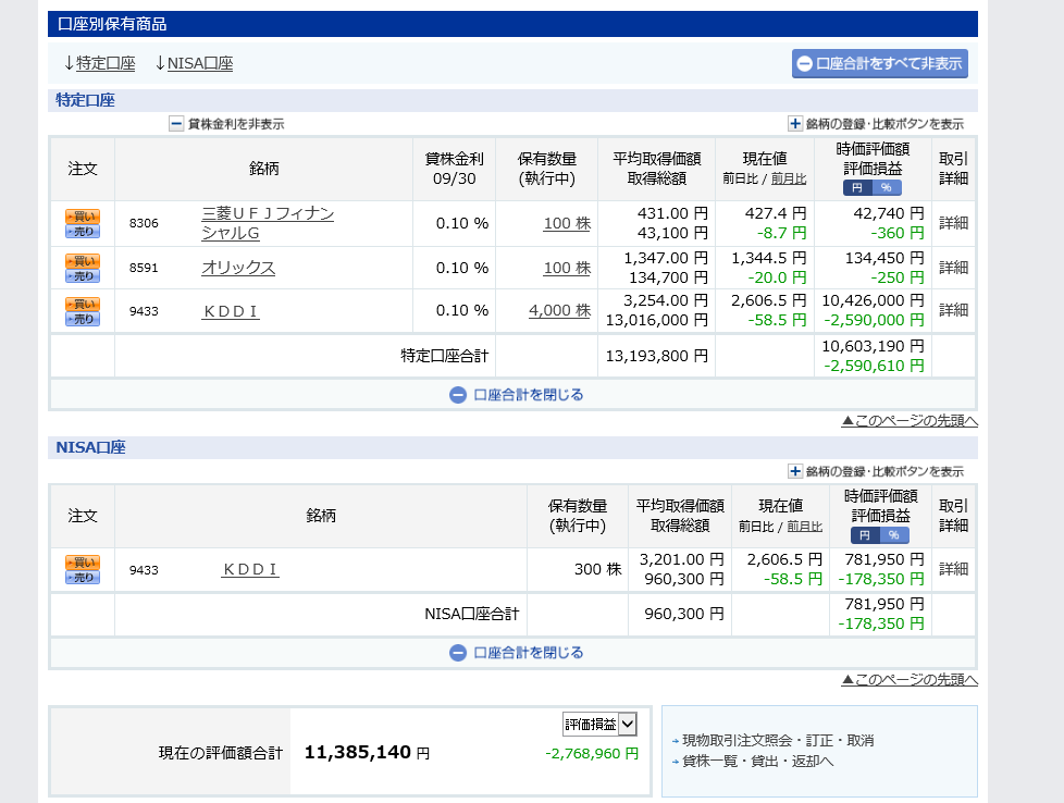 第二次ガースーショックの時(R2年9月30日)のKDDI株式の含み損がすごいですね?ただ、私のKDDIへの分析によれば、ファンダメンタルズが致命的に傷む事はないと判断。鬼ホールドを継続してたところ、株価は反転、上昇に切り替わる。その後は逆にグイグイ上げていきました。