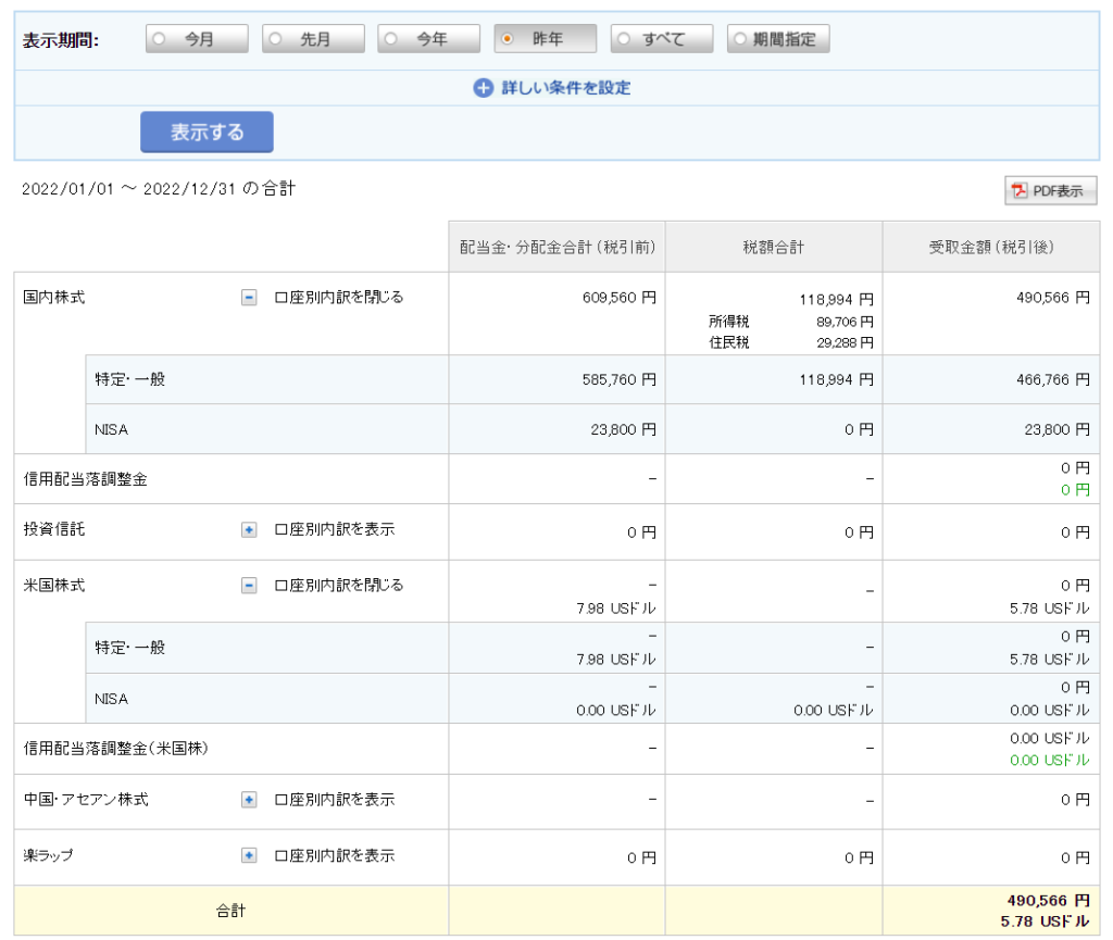 還付されてる額が、日本株の配当源泉徴収額よりもちょっと多いのは、米国株配当からの日本の税務署で抜かれている分も還付されているからです。
