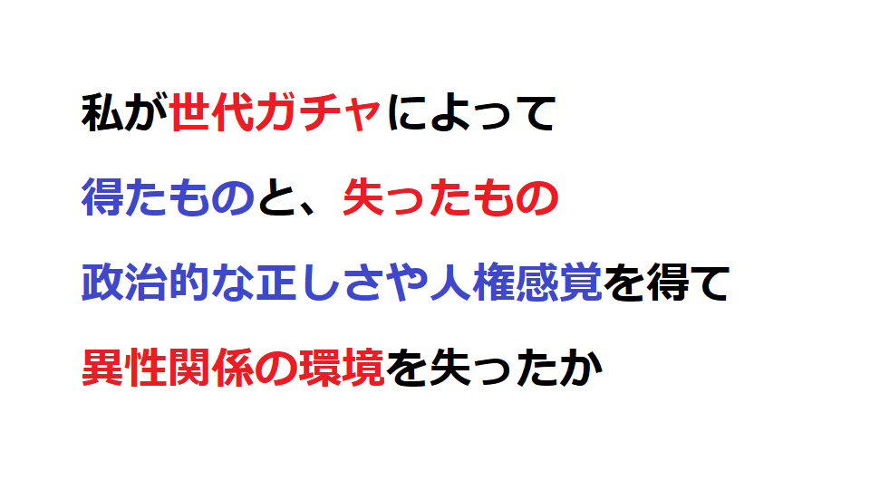 ここから政治的な話です。では、私は自身の世代ガチャ(1983-1984=昭和58-59)により、一方的な損失だけを被って、一方的に負けているだけなのか?